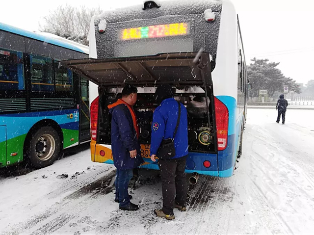 2019年2月15日、19日沈城兩次降雪,每一次的雨雪天氣的來(lái)襲,都是對(duì)全體一線(xiàn)公交人都是嚴(yán)峻的考驗(yàn)。面對(duì)惡劣天氣,各單位多項(xiàng)舉措在雨雪中連夜奮戰(zhàn),干部職工上下一心,紛紛提前到崗,清理場(chǎng)區(qū)、站區(qū)、車(chē)輛積雪,做好出車(chē)前的各項(xiàng)例行檢查,全力保障市民安全出行。大家不畏嚴(yán)寒、齊心協(xié)力、配合默契,忙碌的身影在雪天里形成了一道最亮麗的風(fēng)景線(xiàn)。