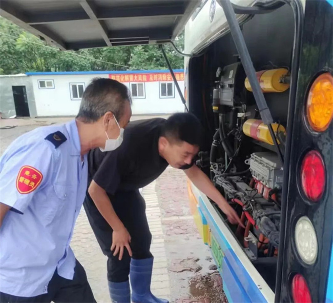 通利公司所屬車隊召開防汛會議,管理人員來到運營線路巡視,查看行車及積水情況,并對駕駛員進(jìn)行出車前的安全提示。