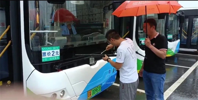 鑫暢公司車隊長叮囑每名駕駛員,樹立安全意識,雨天慢行,強調(diào)進(jìn)站緩行、防止濺水、安全運營。