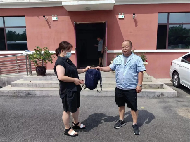 當天下午,一名乘客來到車隊尋找背包并進行詢問,車隊副隊長張春亮說:“背包撿到了,一直在車隊代為保管,請您放心?!焙藢崯o誤后,車隊副隊長把背包交還給失主,同時囑咐乘客以后一定要好好保管自己的隨身物品。這時,正好趕上駕駛員魏軍跑圈回來,該名乘客當面對魏軍表達了感謝之意。魏軍表示不用客氣,這是自己應(yīng)該做的,不能辜負乘客對我們駕駛員的信任。