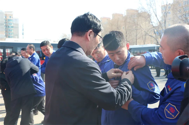 為258路車隊授予“學雷鋒示范線路”牌匾,并為駕駛員代表佩戴“為人民服務(wù)”胸牌