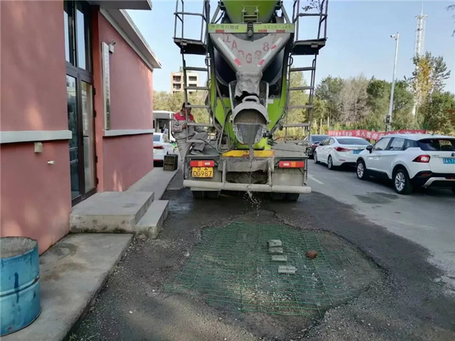 為了徹底解決這個(gè)問題,車隊(duì)租用了一臺(tái)大型水泥攪拌車,將購(gòu)買的水泥等原材料進(jìn)行了均勻攪拌,隨后,車隊(duì)管理人員和駕駛員們齊上陣,將原來(lái)的大坑填成了一個(gè)微斜的平面。