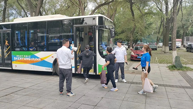 6月6日晚,2026年世界杯亞洲區(qū)預(yù)選賽中國男足對(duì)泰國隊(duì)的比賽在沈陽奧體中心舉行,為給廣大乘客提供便捷的出行服務(wù),做好賽事交通運(yùn)輸保障工作,沈蘇公司調(diào)配了20輛公交車,??吭诘罔F站及奧體中心附近的停車場,為乘坐地鐵的乘客提供免費(fèi)公交接駁服務(wù)。