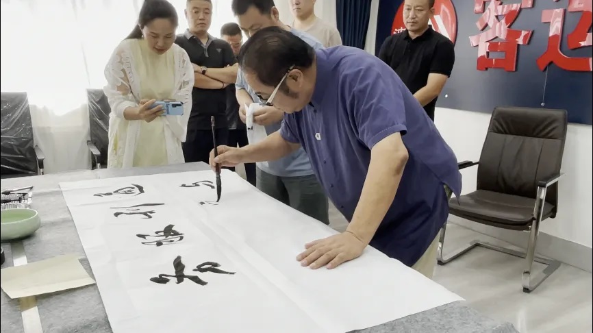 活動中,單丹將自己創(chuàng)作的作品贈送給駕駛員,單銳敏老師則現(xiàn)場揮毫潑墨,用書法表達美好祝福。