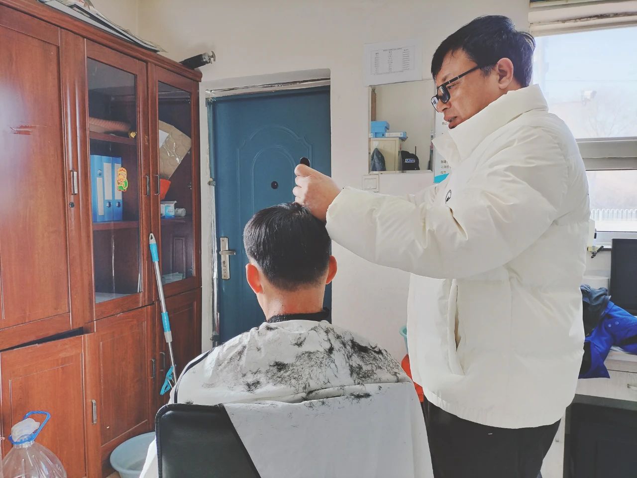 剛理完發(fā)的駕駛員王輝看著鏡子,臉上洋溢著滿意的笑容說道:“平常工作忙得腳不沾地,根本抽不出時間去理發(fā)店,真沒想到在單位就能解決理發(fā)問題,石維立的舉動太貼心了!”
