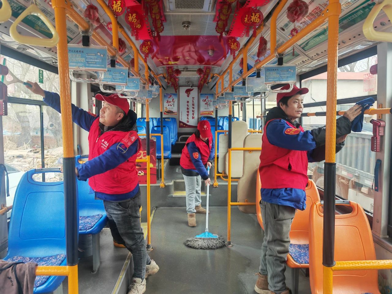 早春的寒風(fēng)依舊冷冽,活動中,志愿者們不畏寒冷,身穿帶有志愿服務(wù)標(biāo)識的紅色馬甲,手拿清潔工具,對公交車輛、場站、候車?yán)鹊葓鏊M(jìn)行清掃,為乘客提供干凈舒適的出行環(huán)境。