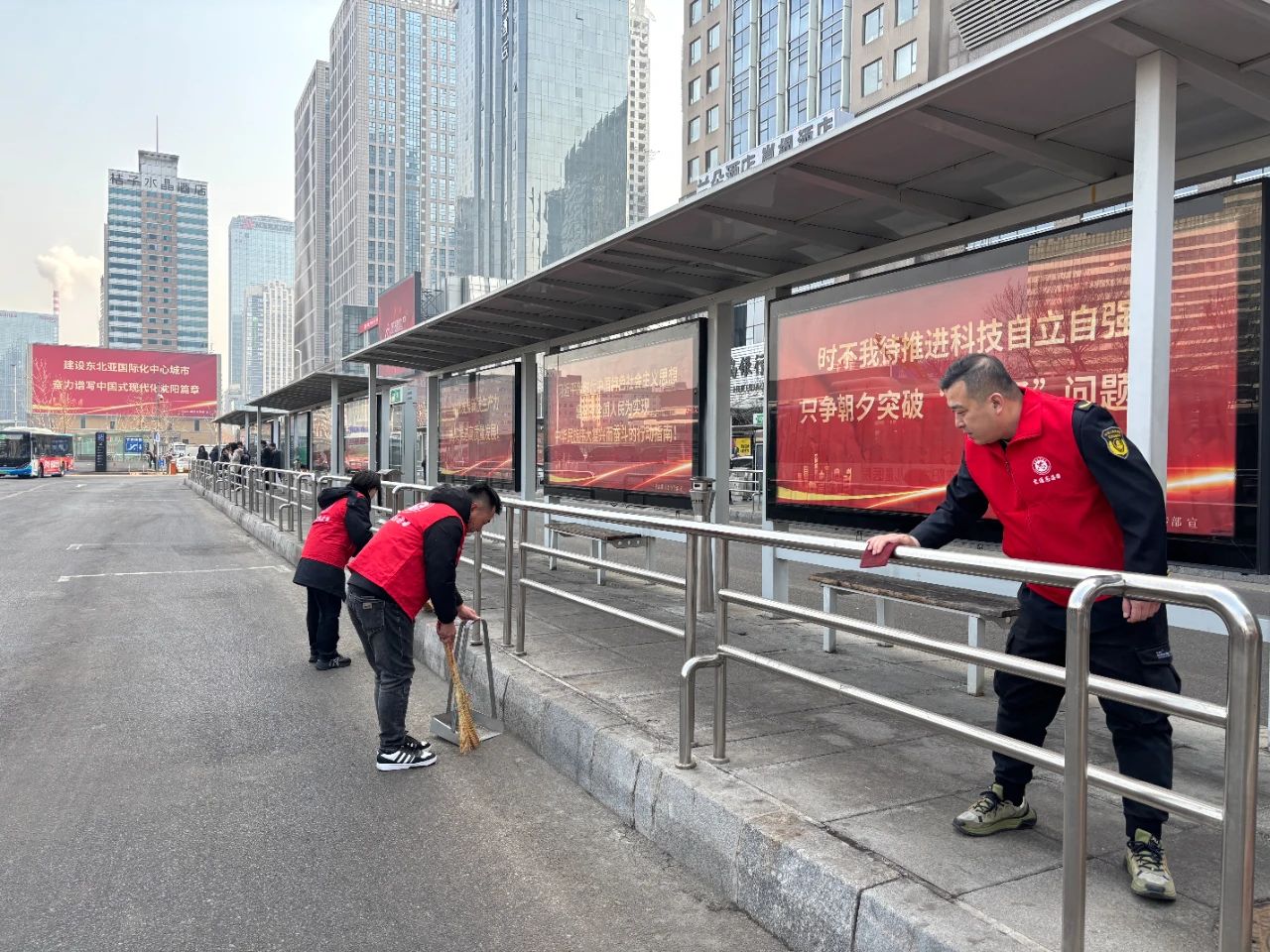 早春時節(jié)乍暖還寒,活動中,各支部的志愿者們不畏寒冷,身穿志愿服務(wù)字樣的紅馬甲,手拿清潔工具,對場區(qū)、辦公區(qū)的殘雪、垃圾以及候車?yán)鹊淖?、欄桿、站牌上的小招貼小廣告進(jìn)行細(xì)致清理,不放過任何一個角落。在志愿者們的共同努力下,大家的工作環(huán)境更美了,周邊公共區(qū)域的環(huán)境更靚了。
