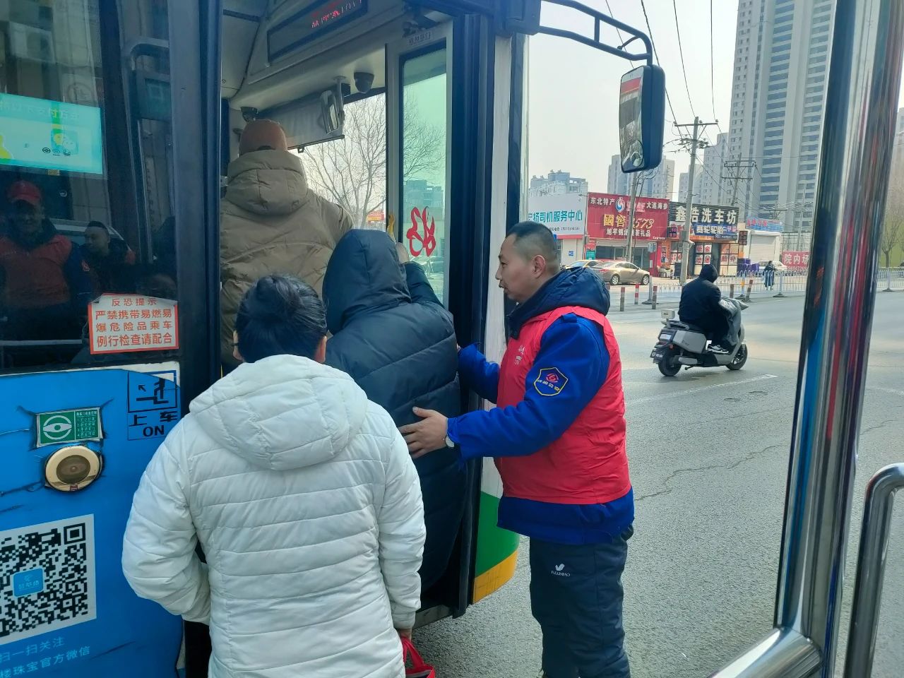 身披紅色綬帶的志愿者們熱情滿滿,為乘客提供咨詢引導(dǎo)服務(wù),耐心解答各類出行疑問,幫助公交站點進(jìn)行環(huán)境升級。