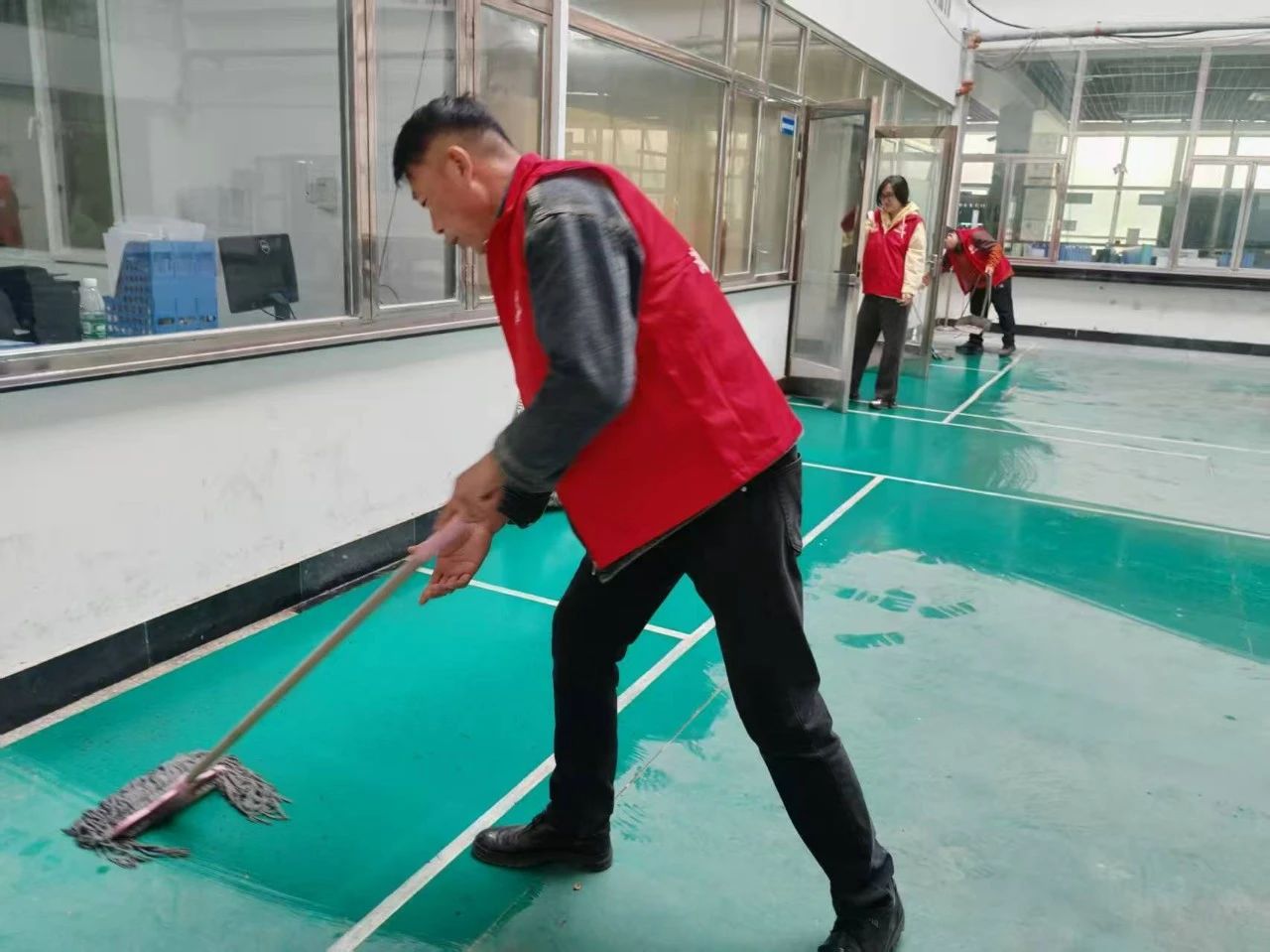 活動當日,黨員同志們身著紅馬甲,手持掃帚、抹布、拖布等工具,分組對駕校報名大廳、理論教室、模擬訓練室、候考區(qū)及戶外訓練場等區(qū)域展開全方位清潔。