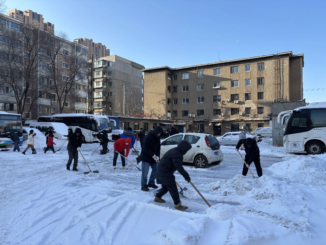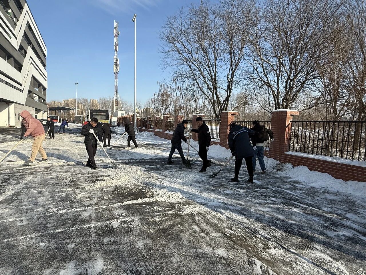 上午降雪漸止后,沈陽客運集團積極響應上級號召,迅速組織廣大黨員干部職工開展志愿掃雪行動。大家對場區(qū)、車隊駐地、辦公樓周邊及公共區(qū)域展開全面清雪除冰工作,以實際行動踐行“我為群眾辦實事”,在寒冬中詮釋黨員的責任與擔當。