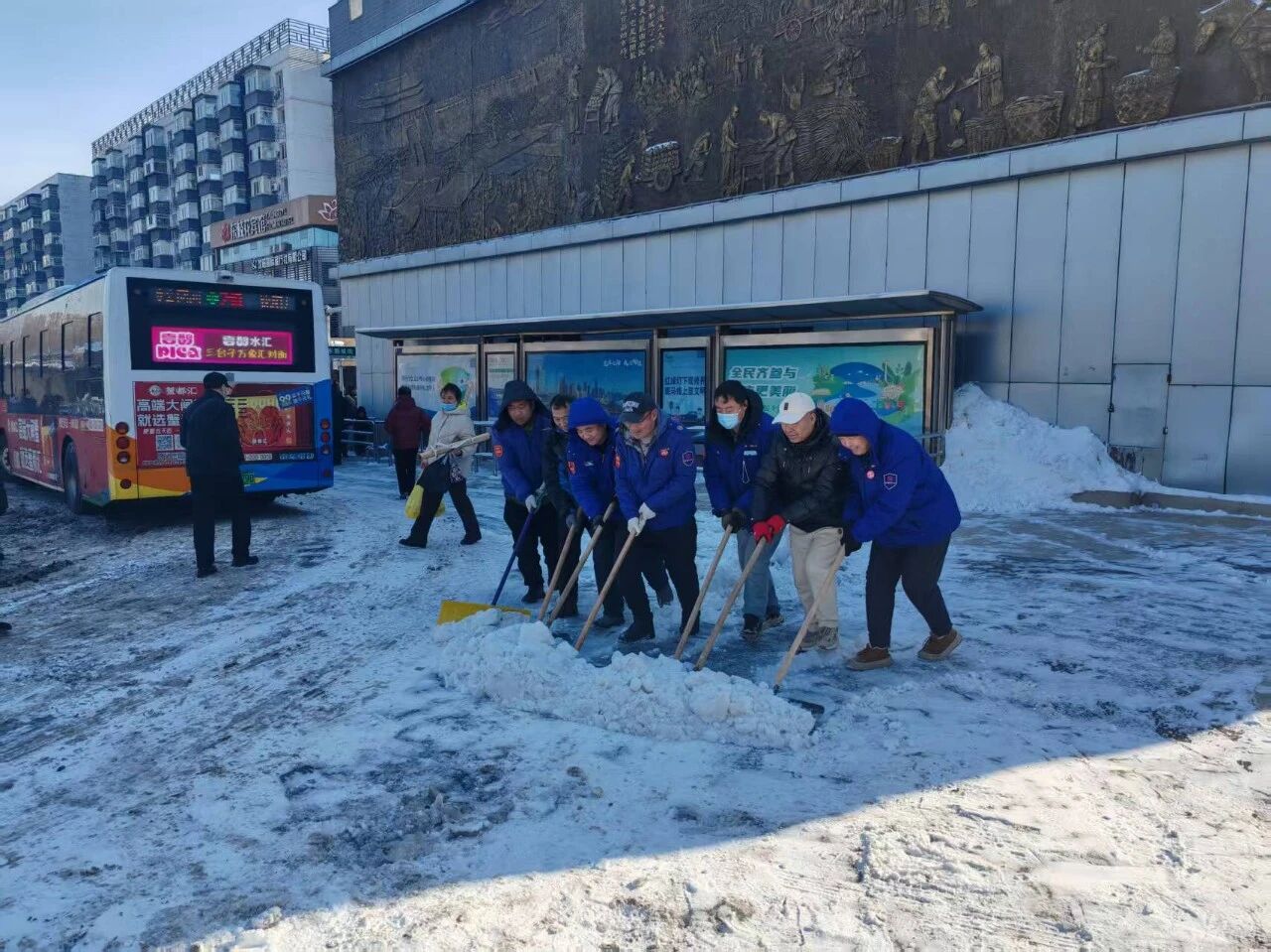 (東陵車隊黨支部攜手紹棠社區(qū)志愿者在大東門站區(qū)開展除雪行動)