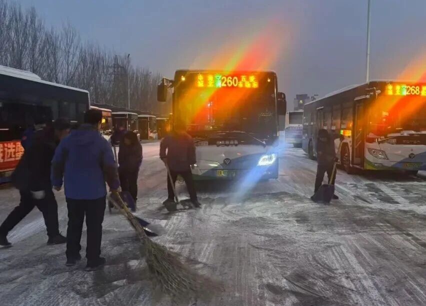 天色未亮,各車隊的管理人員與駕駛員已提前到崗。他們手持除雪鏟、掃帚等工具,默契配合,全力清掃公交場區(qū)、車輛及站臺積雪,為公交車輛安全進出場、乘客安全候車掃清障礙。在確保場站暢通的同時,出車前的安全叮囑準時在各車隊響起:“注意觀察路況,控制車速,保持車距……”一句句樸實而鄭重的提醒,凝聚著公交人對安全行車的高度重視和對乘客的深切責任。