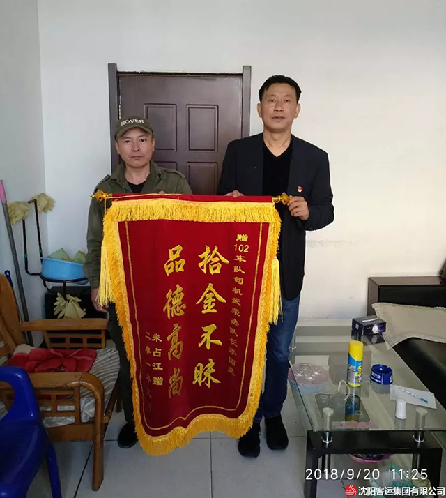9月29日,康利公司251車(chē)隊(duì)973車(chē)駕駛員楊松上午10點(diǎn)左右,從龍之夢(mèng)方向開(kāi)往站西廣場(chǎng)到終點(diǎn)時(shí)拾到了一個(gè)背包,他馬上交給了車(chē)隊(duì),在查找包內(nèi)證件時(shí)發(fā)現(xiàn)有一萬(wàn)元現(xiàn)金。經(jīng)過(guò)多方聯(lián)系終于找到了失主。次日,為了表達(dá)自己的感激之情,失主王女士送來(lái)了錦旗。